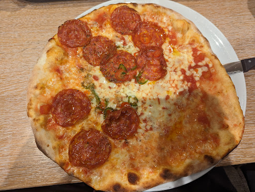 Pizza: Scharfe Salami Pizza. Vor zwei Wochen sah der Pizza wunderbar aus und schmeckte auch himmlisch. Aber heute war mein Pizza wirklich ungeniessbar. Der Boden war schwarz und er sah total anders aus als das letzte Mal. Ich verstehe, dass das Essen nicht jedes Mal gleich aussieht. Aber so einen riesen Unterschied, kann man nucht glauben. Ich hoffe sehr, dass das nächste Mal wie früher aussieht und nicht wie heute. Ich bin sehr enttäuscht. Am meisten hat der Kassierer mein Appetit gleich von Anfang an weggenommen. Ich fühlte mich als Kundin sehr unwohl und wollte am liebsten woanders essen. Falls er Deutsch nicht gut versteht, soll er doch bitte an Kunden fragen, ob wir beispielsweise auf Englisch reden könnten. Er musst doch nicht gleich mit so einem schiefen Gesicht und erst noch so unfreundlich auf Kunden losgehen. Also echt. Bin sehr enttäuscht.