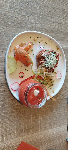 The visit to this brasserie is really worth it. They offer a selection of very unique beers but even if you are not a beer lover, the food is elaborate and beautifully presented and you can tell that they take pride in doing a good job. Located in an industrial area the atmosphere of the restaurant is stylish. Wood, steel and leather come together to create a great decor. If you sit upstairs by the window you can enjoy an amazing view of the Dent du Midi and watch the trains passing by. The service was...