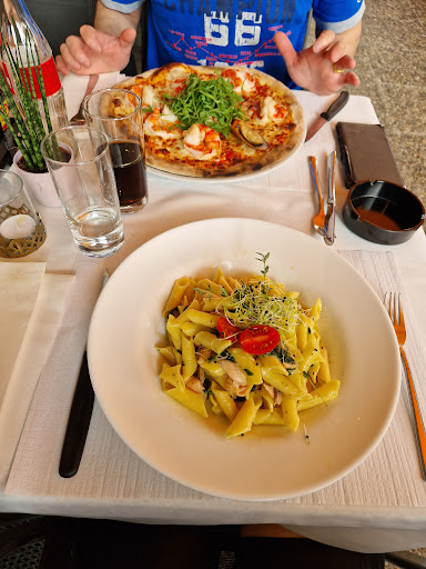 Dies ist das erste und letzte Mal, dass ich dieses Restaurant besuche. Ich nahm die Roma-Vorspeise, und als der Teller kam, waren nur zwei Scheiben gekochter und roher Schinken und zwei Scheiben scharfe Salami da und der Preis betrug 22,00 Fr. Dann bestellte ich die Tagliatelle alla Carbonara, der Teller kam nach einer Stunde und es war sogar sehr wenig darauf getan. zu allem Überfluss vergaß die Kellnerin die Sachen, die wir bestellt hatten, und wir waren auf der Terrasse, als eine Frau von einem anderen Tisch kam und ungefragt die Zigaretten und das Feuerzeug von unserem Tisch nahm, ohne zu fragen. In dieser Situation sagte oder tat die Kellnerin nichts. Sie essen schlecht und geben zu viel aus und der Service...