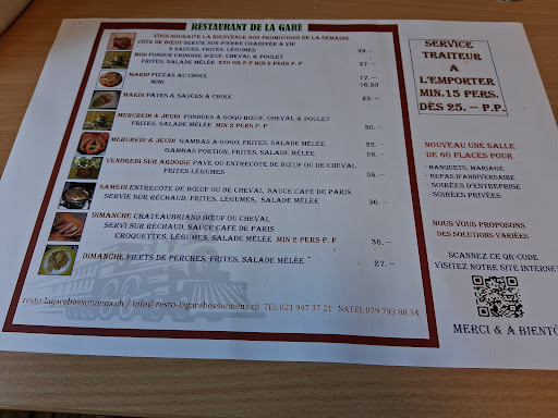 Read moreUne bonne table qui reste ouverte assez tard le soir. Le service est très agréable et professionnel. Côté cadre, la salle est spacieuse mais manque d'un peu de cosy, et dehors, vous avez la cantonale et une ligne HT qui barre le paysage. La terrasse est petite et proche de la route où l'on roule vite hélas. Vous avez un parking gratuit et on y trouve toujours une place. La carte peut un peu dérouter, mais je recommande sans réserve les viandes types Chateaubriand à partager à deux, c'est un régal. On vous servira une petite entrée sans prétention mais bienvenue (salade). Belle carte de...