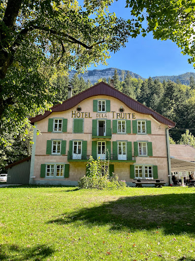 Read moreChamp-du-Moulin liegt malerisch im Val de Travers, eingebettet zwischen Noiraigue und Boudry, direkt am Ufer der Areuse. Der kleine, idyllische Ort ist Teil des Naturreservats Creux-du-Van und besticht durch seine ruhige Lage und natürliche Schönheit. Das historische Hotel-Restaurant de la Truite befindet sich traumhaft schön quasi direkt am Flussufer. Das Gebäude wurde 1832 nach einem Brand neu errichtet und entwickelte sich 1897/98 zum Hotel-Restaurant. In den 1930er Jahren musste der Betrieb aufgrund wirtschaftlicher Schwierigkeiten eingestellt werden. Dank der Champ-du-Moulin Foundation wurde das Haus liebevoll renoviert und der grosse Festsaal restauriert – die Wiedereröffnung fand im Jahr 2015 statt. Ein echtes Juwel ist die angrenzende Salle des Fêtes, eine historische Halle aus der Belle Époque, die heute als Kulturgut von nationaler Bedeutung gilt. Am ersten Abend unserer Ferien durften wir hier ein wunderbares Abendessen geniessen. Auf der grosszügigen, hübsch gestalteten Terrasse wurden wir herzlich empfangen und aufmerksam bedient. Die Speisen waren liebevoll angerichtet und haben hervorragend geschmeckt – ein kulinarisches Erlebnis in einem einzigartigen Ambiente. Wir haben die Zeit hier sehr genossen, die beeindruckenden Gebäude besichtigt und die besondere Atmosphäre auf uns wirken lassen. Die Lage und das Erlebnis hier war so aussergewöhnlich, dass wir ganz sicher...