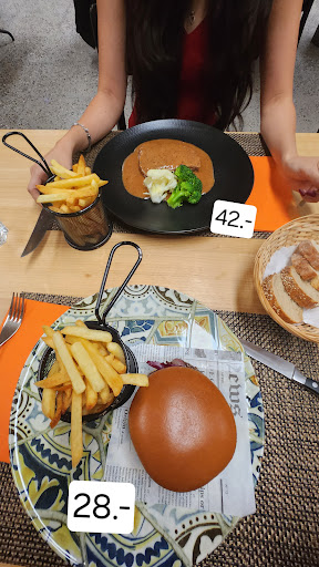 Le Burger n'en est pas moins enthousiasmant, une simple burger avec frites servis sans sauce pour 28.-