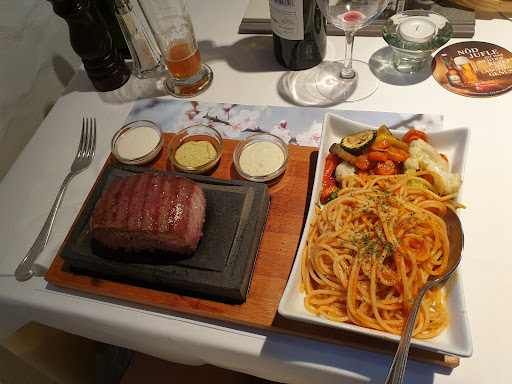 Read moreGrundsätzlich gutes Essen, nette Bedienung und kurze Wartezeiten. Die Speisekarte ist ein Mix aus Italien, Portugal und diversen Fleischstücken auf heissem Stein. Ich persönlich mag diese Stein Geschichte nicht so, weil der ganze Gastraum und danach auch die Kleider nach Küche riechen, was ich eigentlich in einem Restaurant genau nicht möchte. Grund für meinen Besuch war der Pizza Holzofen, der in dem ganzen Angebot etwas untergeht, jedoch eine Pizza mit der erwarteten Qualität zaubert. Der Boden dünn und knusprig, der Pizzaiolo dürfte noch etwas weniger auf eine perfekt runde, dafür auf eine Pizza mit etwas Rand achten, aber das ist Geschmackssache. Alles in allem ein Besuch wert, am besten einfach die Jacke im Eingang an die Garderobe hängen, dann gehts auch...