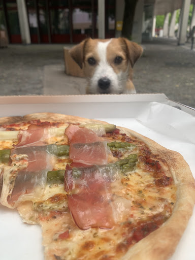 Today I tried it for the first time and I regret that it was so late. Delicious pizza on a thin and crispy crust, and above all I did not have the feeling, as is often the case with pizzas, that it was salty. Delicious tomato sauce and cheese🍕! After eating it my tummy felt great😋 We are giving the terrier...