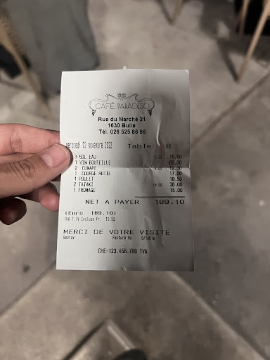 Read moreFood was good but we paid almost 16 francs for plane water 5.20 per bottle of 50 cl water filled by them. There was no place in the menu or the place that said the price of the water so really not worth the money if you got to pay...