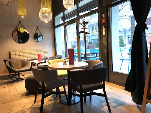 Read moreEs besteht aus zwei Teilen. Ein Teil ist mit einer Bar, der zweite Teil mit dem ersten verbunden und ist ein Bistro mit Sitzmöglichkeit aussen wobei der erste Teil auch Aussensitzplätze hat. Wir haben nichts gegessen. Es gibt im ersten Teil ein Tagesmenüe sowie Karte mit feinen Gerichten sowie eine Snackkarte. Auserlese Weine. Im Bistro gibt es eine kleine Auswahl an Speisen sowie kann man dort super Frühstück essen. Der Servic war ganz okay, sie hat uns nicht gesehen weil wir einen ruhigeren Platz zum reden privat gewählt haben. Ich ging an die Bar. Leckerer Tee. Ambiente top und entspannt realex. Das B5 ist auch ein Hotel....