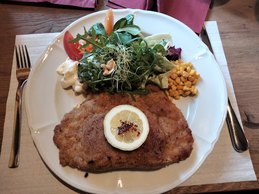 Read moreDas Restaurant National in Burgdorf ist bekannt für seine gut bürgerliche Küche. Liebhaber von Schnitzel Wienerart und Cordon Bleu sind am richtigen Ort. Ich glaube es hat acht verschiedene Cordon Bleus im Angebot. Ich bestellte das 'kleine' Teil mit Käse, gutem Schinken und Pilzen. Ich hatte die Erfahrung mit Pilzen noch nicht gemacht, sehr lecker gewesen und werde diese Variante in meiner Küche wiederholen. Verschiedene Salate, aufpassen, auch die sind groß und gut werden mit sehr guter französischer oder italienischer Sauce angeboten. Die Nachtische sind ausgezeichnet, selber gemachte 'Brönnti Creme' oder Crema Catalana, ein luftiges Mousse aux Chocolats lohnen sich. Aufpassen, die Cordon Bleus sind ausgezeichnet und 500g, richtige Jumbos, kann man locker teilen oder bestellt den kleinen Teller. Wer sein Teil nicht schafft, dem wird es gerne mit nach Hause gegeben. Ich bin vom National überrascht und werde wieder vorbeigehen. Dann werde ich die Rahmschnitzel meiner...