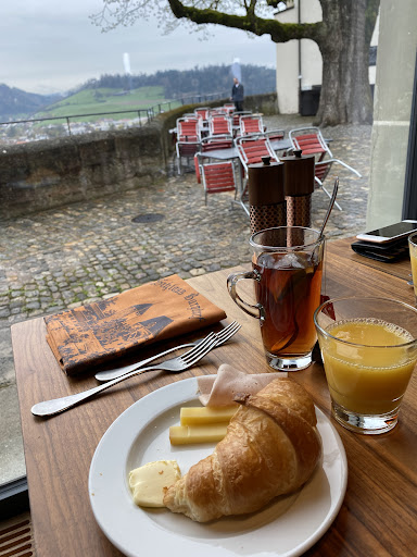 Enttäuschender Besuch im Schlossrestaurant Die Lage und der Innenausbau des Restaurants überzeugen sehr. Viel mehr Positives kann allerdings von unserem Besuch nicht berichtet werden: Angefangen beim Saisongemüse, das Anfang April Peperoni, Aubergine und Zucchetti aus dem Gewächshaus in Spanien sind (=O-Ton Servicepersonal). Die Auswahl an vegetarischen/veganen Gerichten ist eher bescheiden. Nachdem das Saisongemüse mit Belperknolle und Polenta wegfällt, bleiben noch der vegane Burger und ein Pilzrisotto. Beides wurde an unserem Tisch bestellt. Vor allem der Burger enttäuscht leider: In der Karte ist nicht klar ersichtlich, woraus der Burger besteht: Cole, Rüebli, Tomate und Salat. Dass dazu ein Fleischersatz-Pattie serviert wird, ist mässig kreativ. Besonders schade war, dass der ganze Burger lauwarm serviert wurde. Der Burger wurde aber auf Anfrage im Ofen aufgewärmt, so wurde das leckere Brot zwar etwas cross, aber eigentlich noch fast leckerer ;-) Das Servicepersonal hat leider auch nicht überzeugt: Eher lange Wartezeiten für Kaffeebestellung und unangebrachte Kommentare über andere Gäste werden mich das Schloss leider nicht mehr so schnell besuchen lassen! Schade um die...