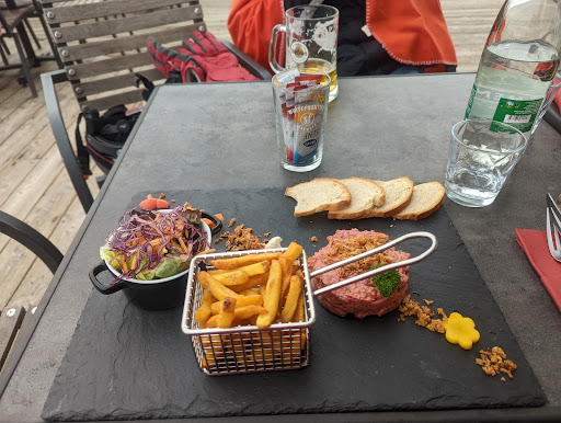 Fantastic place to have lunch. The portions are huge and at a good price for Switzerland. The staff were friendly and very helpful: They spoke good English; they were able to help me navigate the menu and choose something which was suitable. I had the steak tartare, very good. The view from the terrace...