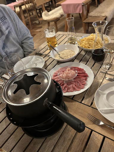 Great place to come with friends. Of course, table has to be booked earlier as its just for Christmas/advent time and there is lots of people. Service was quick and very friendly, fondue was definitely one of the best I ever tried, atmosphere typical for places like this. I was just disappointed with one couple, sitting next to us, expecting waiter to be JUST FOR THEM. They could not understand that there are hundreds of people around and staff is busy... If you want to spend romantic time looking in each others eyes, in silence, where waiter calls you BOSS or BRUDER, go to kebab store and stop complaining. Here you come to enjoy the Christmas atmosphere with friends, eat good food and feel comfortable!! Alphutte Chur - highly...