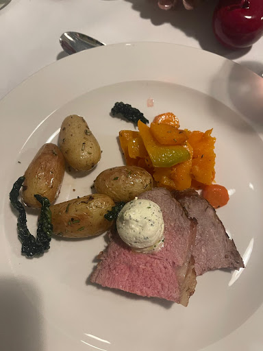 Abendessen, 2/5: Beim Apéro (Bruschette-Trio) hatte das Bruschetta mit Gemüse kaum Geschmack. Es war eine hauchdünne Paste, welche aufs Brot geschmiert wurde. Die Vorspeise (Salat) war sehr schön angerichtet aber es gab sehr wenig Salatsauce dazu. Der Hauptgang war grundsätzlich lecker aber DEUTLICH zu klein. Es gab 4 winzige Kartoffeln, ein bisschen Gemüse und zwei winzige Stückchen Fleisch. Beim zweiten Durchgang (Nachschlag) war es völlig chaotisch. Sie liessen ganze Tischreihen aus oder brachten ein Fitzelchen Fleisch aber kein Gemüse/keine Kartoffeln und/oder umgekehrt. Vegetarier und Personen mit Intoleranzen bekamen ihren Hauptgang, als alle anderen bereits fertiggegessen hatten. Eine Kollegin musste schlussendlich ganz alleine Essen. Das war gelindegesagt wirklich lausig und habe ich in diesem Ausmass noch nie erlebt. Der Nachttisch war lecker aber auch hier gab es nur sehr wenig.