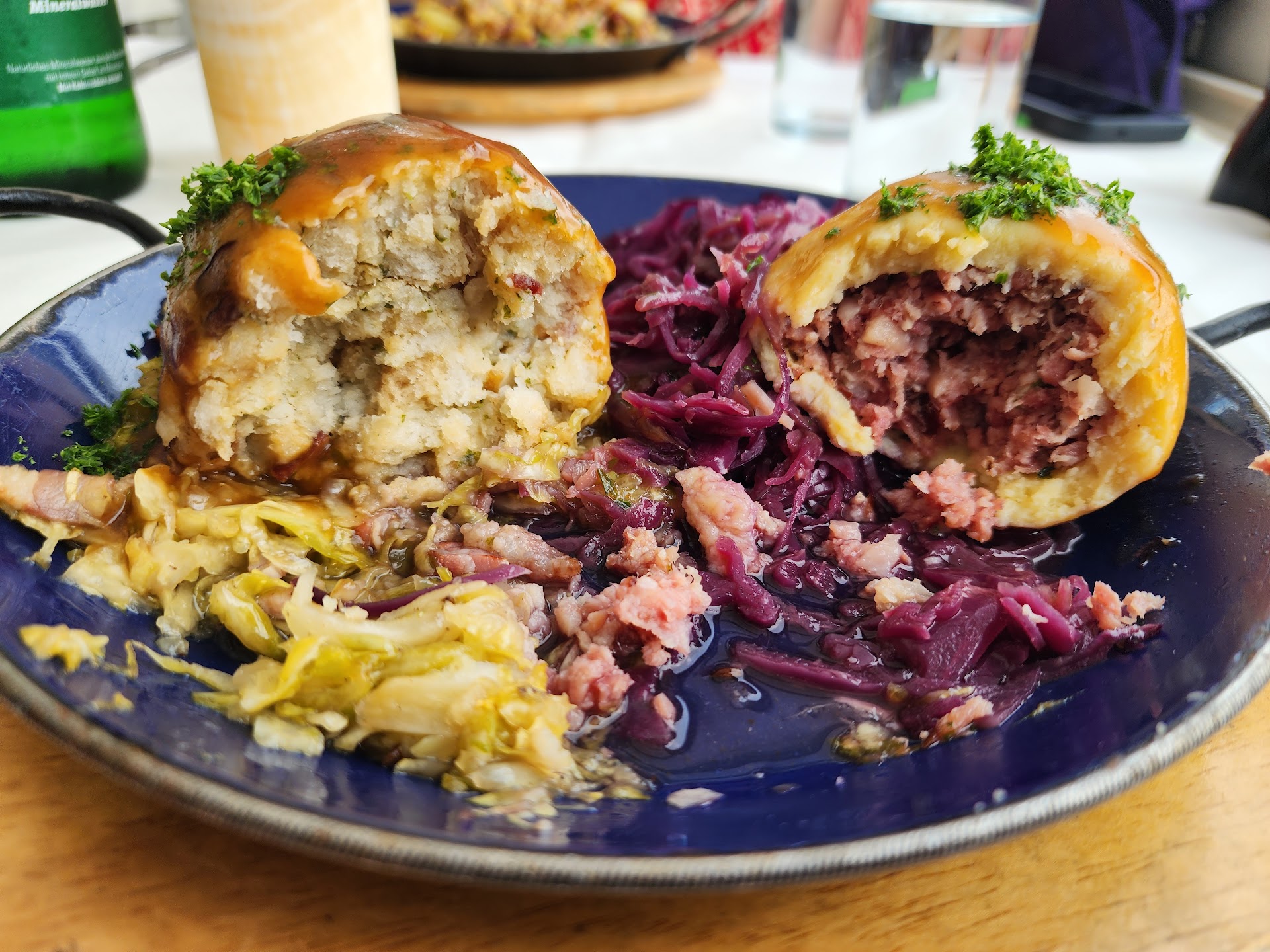 We decided to try the Austrian specialties - the dumplings. We were not sure what to expect, and they were huge! The plates were super hearty and heavy on the ham/bacon. We could not finish and unfortunately had no fridge in our room to take leftovers. Probably should have stuck to one dumpling rather than 2, but I wanted to try a couple different types.