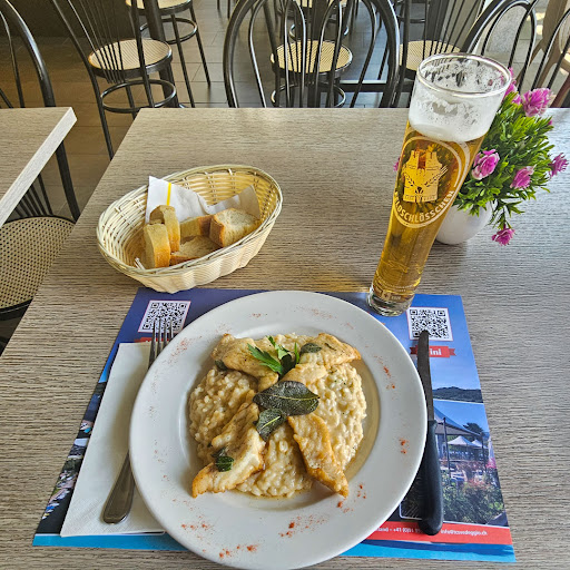Read moreI was staying at the campsite and decided to try a meal at the restaurant. The outdoor setting, the only one possible for who has a dog, was welcoming. The waitress was very kind. The meal, a Caprese salad, the tomatos had no flavor at all, but with oil, salt, and pepper it was edible. The dessert was good, and a mineral water, CHF 31, seemed a bit excessive. I'm well aware that the restaurant industry is struggling due to rising costs, but the end customer then suffers the consequences, which ultimately doesn't help...