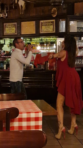Read moreErano più di vent'anni che non ci andavo e una sera abbiamo deciso di tornare. Il locale è una sorta di saloon americano ma la cura del dettaglio è poco fedele ai veri saloon. Ma questo è un dettaglio perché ci si va per mangiare e la qualità è molto alta. Abbiamo preso sia le costine (puntine) in versione classica americana caramellata che dei filetti di manzo sulla pioda, di ottima qualità. Cavoletti di Bruxelles purtroppo un po' crudi. Fritto di pesce niente male. C'è il karaoke. Alcuni non si sono mai ascoltati o hanno amici generosi, taciturni o molto gentili, perché cantano uno strazio senza rendersene conto. Altri sono bravi. Rompe un po' le palle il karaoke mentre si mangia ma comunque sopportabile. Ci sono due sale. Meglio quella dove c'è il bar, più areata e meno rumorosa nonostante il karaoke. Il servizio è stato molto efficiente, gentile. Un ragazzo calabrese simpatico e gentile ci ha servito. Il conto era in linea con la qualità del cibo. L'ambiente è vivace e contornato da personaggi talvolta bizzarri. Fuori abbiamo assistito ad una mezza rissa tra una cameriera di un altro bar e una cliente un po' scalmanata. Episodio folkloristico. Ci tornerei per mangiare perché merita sicuramente. Molto bene e...