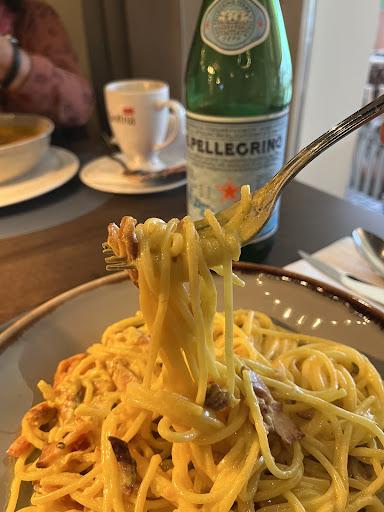 We came in for supper. We were quickly seated and the staff was nice, but spoke only German and Italian (she said she spoke English but clearly didn't). We then had an issue and had to leave the restaurant as quick as possible. The waitress didn't understand at first but then proposed to give us our plates to take away. It came quite late, considering that we had already ordered since 25 minutes ago. We left running and the waitress looked annoyed, which I understand. The plates were tasty, but a bit small. Overly, the staff is nice but stressed and the food good...