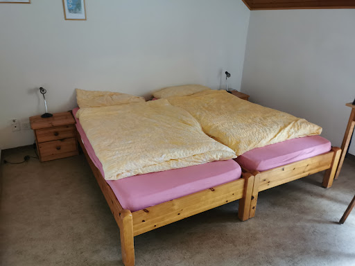 Das Zimmer 6 mit Dusche und Bad auf dem Gang ist sehr einfach eingerichtet, es riecht aber angenehm nach Holz, wogegen das Zimmer 8 mit Du/Wc im Zimmer nach abgestandenem Rauch riecht. Der Kirchturm ist sehr nah und schlägt die ganze Nacht zur vollen Stunde. Evtl Ohrstöpsel mitnehmen. Du/Wc auf dem Gang sind sehr sauber, der Duschkopf müsste Mal entkalkt werden, der Wasserstrahl fühlt dich eher an wie „sandstrahlen“. Dass es weder Duschbad/Shampoo noch Seife für die Hände gibt (Hallo Corona und igitt grosses Geschäft auf der Toilette!) geht meines Erachtens aber gar nicht. Ausser dem Schlüssel und dem Hinweis, dass es Frühstück von dann bis dann gibt, werden keine weiteren Informationen gegeben. Das geht definitiv noch besser, grosses Plus ist jedoch der Preis von CHF45 PRO Person. Wie wahrscheinlich bei allen hier im Dorf gibt es ein großes Fliegen Problem. Das soll damit zu tun haben, dass die Kühe nun auf der Alp sind (Anfangs Juli) Das Frühstück besteht aus Brot, Butter und Marmelade in Aludöschen, einer Scheibe Weichkäse, O-Saft und bitterem, viel zu heissem Kaffee. Die Frage, ob man das Frühstück draussen mit der wunderschönen Aussicht einnehmen könne, wurde auf extrem unfreundliche und ruppige Art verneint. Das Frühstück wird hier drinnen eingenommen. Es ist ja nicht so, dass man ein ganzes Buffet hätte draussen herrichten müssen. Wir reden von drei Teller raustragen. Hätten wir sogar noch selber gemacht. Wir durften dann immerhin den zweiten Kaffe draussen geniessen. Alles im Allem sehr viel verschenktes Potential und extrem schade für den schönen Ort. Wir kommen leider...