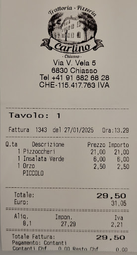 Buongiorno a tutti, raramente scrivo recensioni , in particolare quando non sono positive. Non é mai facile, almeno per come sono fatto, dare un feed-back che sia il maggiormente costruttivo per chi lo riceve. Oggi mi sono recato in questo ristorante perché spinto dalle notevoli recensioni positive , trovandomi per lavoro a Chiasso mi sono detto : "perché non provare". All'ingresso osservo il menu' esposto fuori dal locale ed attratto dal prezzo ragionevole dei primi piatti entro. Il personale composto da tre gentili cameriere si fa in quattro per farmi sedere nonostante il locale sia molto affollato. Ritengo questo molto positivo e ringrazio per la gentilezza e l'accoglienza. Una cameriera si avvicina e mi propone come piatto del giorno i Pizzoccheri alla Valtellinese , una pasta fatta con verdure e formaggio fuso....molto buona devo ammetterlo. Bravo anche allo staff in cucina , cosa da non sottovalutare in una giornata affollata come oggi. Il servizio é rapido e preciso , anche se , piccola nota , ordino un'insalata come antipasto nell'attesa dei Pizzoccheri ma in realtà mi viene servita nello stesso momento dei Pizzoccheri. Dico pazienza, comprendo che in un'orario di punta come il mezzogiorno sia difficile coordinare il tutto. Vi chiederete quindi cosa abbia scaturito la valutazione assai bassa ad una stella..... Ebbene , é stata la sorpresa , una volta in cassa per pagare ..... Il primo piatto mi é stato conteggiato a 21 CHF !!!! Ben 10 CHF in piu' del prezzo medio dei primi piatti indicati nel menu esterno al ristorante (11CHF vedi foto allegate). Sorpreso negativamente decido di pagare ed andare a lavorare senza dire nulla , ma se avessi avuto un po' piu' di tempo avrei volentieri fatto le seguenti rimostranze :