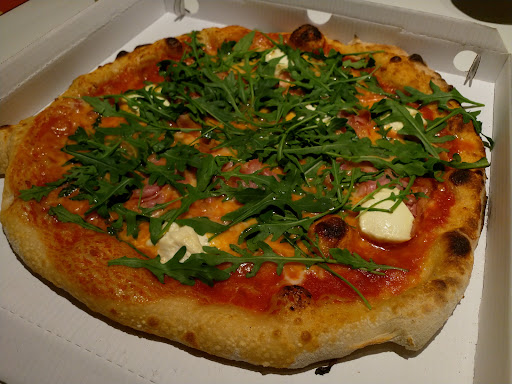 Ingredienti freschi, gustosi e ben bilanciati. Impasto leggero, ben lievitato e oserei dire sempre in miglioramento. Una delle migliori pizze simili a quelle a cui sono abituato in Italia. Non è stile napoletano... ma è davvero un'ottima pizza.