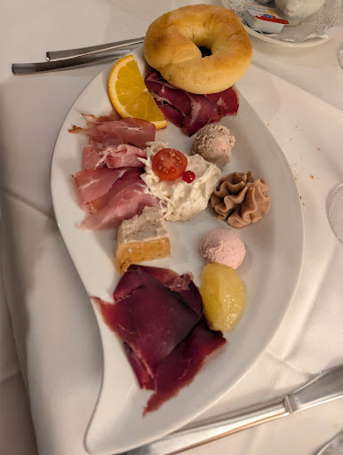 Premetto che avevo grandi aspettative del locale, ma presto ho dovuto ricredermi. Ho partecipato ad una cena aziendale a base di sella di capriolo - chinoise con antipasto misto. Devo dire che il cameriere che ci ha dato il benvenuto è stato davvero gentile e simpatico. (ragazzo giovane e alto). Iniziamo la cena con l’antipasto misto: piattino di affettato e paté normalissimo però buono. Abbiamo poi proseguito con chi mangiava la sella (io) e che mangiava la Chinoise. Diciamo che nel contesto era anche un bel piatto sicuramente buono, porzioni normali con tre fettine di sella con la possibilità di fare il bis.. fino a qua tutto bene nel complesso. A metà serata io non stando bene ho dovuto alzarmi chiedendo il conto per poter andare via. Ho chiesto ad una cameriera se potessi pagare e lei gentilmente mi ha detto che mandava la sua collega che in quel momento stava “aiutando” a servire. Nel mentre sento che dice adesso possono aspettare con malo modo. Sì perché nel frattempo anche un altro ragazzo doveva andare quindi eravamo in due ad aspettare di poter pagare. Con modo scortese arriva ci chiede cosa abbiamo mangiato e di seguirla verso la cassa, facendoci passare attraverso la cucina (non mi sembra una gran trovata sia per l’igiene e sia per la sicurezza siccome al momento c’erano fornelli accesi ecc.) al momento di pagare la parte divertente sembrava che stesse improvvisando con i prezzi almeno per antipasto misto, fatto il totale rimango stupito dal fatto che io pur avendo mangiato solo l’antipasto e praticamente mezzo piatto di sella (3 fette di carne e gli spatzli) mi ha fatto il totale prezzo pieno come se avessi mangiato 2 piatti. Io non chiedevo di non pagare ma magri avrei apprezzato il gesto di almeno chiedermi cosa fosse successo siccome pure lei la stessa cameriera si era resa conto che non avevo finito la prima portata quando hanno fatto il bis. Non mi sembra un comportamento molto corretto, far pagare il prezzo pieno ad una persona che non ha mangiato l’intero menù. Detto questo concludo dicendo che la location è appena discreta, non mi sembra un posto molto curato nei dettagli con qualche...