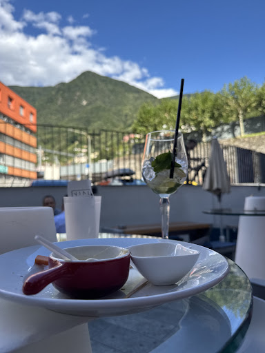 Nice shadowed terrace, great place to stop while waiting for the cabin to climb the heights nearby... or recover and cheer after the long walk back from top to valley 😉. Try the cheese platter, generously served with an excellent bread and a glass of tasty...
