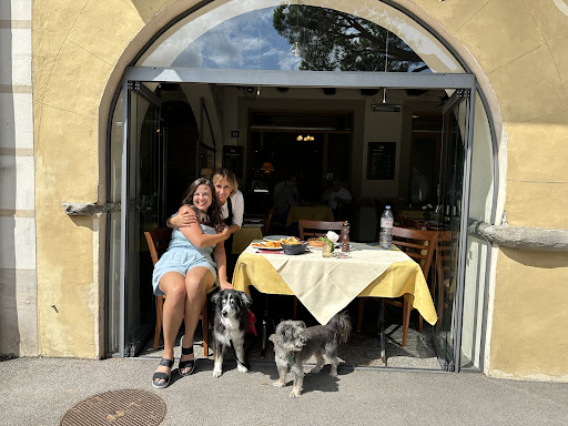 Read moreWhat a beautiful, delicious, friendly experience it was eating here! I can’t have gluten and, as imagined, it was difficult to find anything I could eat (other than salad or a meat/fish dish) in this small, Italian-speaking Swiss town. I spoke to the very friendly woman standing in the restaurant, asking about gluten-free options, and she mentioned that they have polenta. She switched to Spanish for me (I speak zero Italian and a bit of Spanish) to explain further. I got Polenta Bolognese - not on the menu, but I asked specifically for it and they said sure! Then I mixed it with my friend’s Polenta Formaggio (which was delicious in its own right - perfectlyyy melted cheese) - and it was incredible! It was basically gluten-free lasagna. Learned that the wonderful woman I spoke with, Radica (pictured here hugging me) owns this restaurant - I joked with her and our kind, friendly waiter named Dragan that they should add this Lasagna without gluten to the menu!