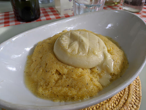 It bore no resemblance to our prior experience. Had a Very Expensive $93 dinner for two; haphazard food preparation and lackadaisical service. The polenta itself was fine; but $93 For some heavily salted, swimming in oil mushrooms, and a small bowl of salad with just lettuce (again with gobs of oil) and some white wine?