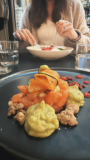 Salmon tartare with ginger, avocado, Hokkaido pumpkin with soy and sesame and sansho pepper crumble - so many different textures that went together so well. Taste wise, it was fresh, tangy and that sansho pepper crumble added a little kickā
