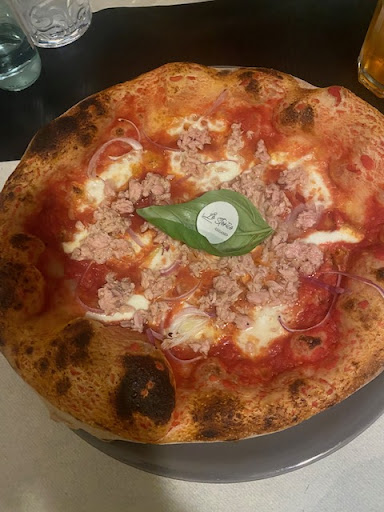 Cosa posso dire? Le foto parlano.. la pizza è buonissima! L' impasto è così leggero che finito di mangiare ci si sente sazi ma comunque leggeri, non con quella sensazione di pesantezza nello stomaco, sono andata a mangiarci 2 volte e ho apprezzato tutto, il servizio e il cibo erano eccellenti! Non posso che consigliarlo, unica pecca che ovviamente non mi va di scrivere come se fosse veramente una cosa che penalizza il locale (perché ripeto era tutto più che buono e eccellente ) c'era un bel po' di fumo quindi dopo un po' ci si sente avere gli occhi lucidi e stanchi. Per il resto ripeto, posto magnifico, non troppo grande e molto accogliente
