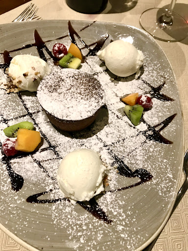 Arrivato il momento della cena, ho optato per un bel filetto di manzo al vino, servita con un soufflé di patate e un'eccellente salsa alle prugne. Il piatto era squisito, la salsa leggermente dolce rendeva il filetto perfetto, quasi si sciogleva in bocca! Il tutto accompagnato da delle ottime verdure stagionali. Il titolare Salvatore, gentilissimo, mi ha consigliato un ottimo rosso Sardo dalla sua vasta selezione di vino, da accompagargli, scelta azzeccata a pieno!