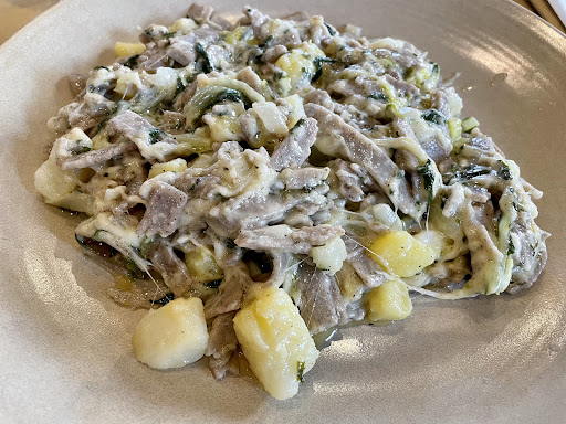 Prenotiamo un tavolo al telefono , preordinando anche i piatti, specificando che 4 persone avrebbero diviso due porzioni. Una volta arrivati e serviti i piatti, ci spiegano (con tono per niente gentile) che non si può fare, che se si intende mangiare di meno allora si deve richiedere la mezza porzione e si paga di conseguenza. Spieghiamo che noi non eravamo al corrente della cosa e che al telefono avevo anticipato questo ma nessuno ci aveva informato della mezza porzione. La ragazza spiega a sua volta che non sa chi abbia risposto al telefono e che comunque non funziona così quindi ci farà pagare secondo la loro politica. Quindi ci portano un solo piatto (non la mezza porzione a testa) e noi lo dividiamo in due. Morale della favola: piatto di gnocchi che sul menu costa 17 franchi, ha deciso di farlo pagare 13 franchi a testa, così a spanne (non si capisce da dove abbia tirato fuori questa cifra) cesar salad che sul menu costa 20 franchi, ha deciso di farlo pagare comunque 13 franchi a testa (come la pasta, anche se la pasta costava meno)