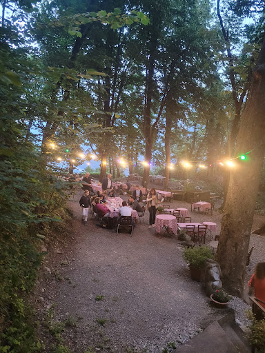 This is a magical spot with great service, food, and wine. The location is unique, the waiters were extremely friendly, and the local dishes and wines are tasty and worth their price. Getting there by car is quite the experience. Make sure you don't travel there with a huge SUV as parts of the village roads are extremely narrow. All in all, we had a memorable evening here on the mountain in the woods under the fairy lights. Dogs are welcome, there even is a small meadow next to the dining area where they can play or maybe attend...