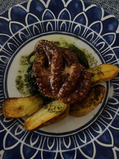 Das Restaurant ist sehr sauber und schön eingerichtet. Das Service Personal ist sehr freundlich und professionell. Habe heute 02.09.2021 das Restaurant dank Google map gefunden. Es befindet sich im Industrie Zone hinter Groupe Fonceca Gebäude (unbedingt Google map benützen). Jetzt zum Essen: Habe heute das Salada da casa, Pulpo und mousse de chocolat probiert. Der Salat war leicht und frisch und mit Nüsse verfeinert. Salat Sauce einfach gehalten und zwar mit Olivenöl, Salz, Pfeffer und Essig. Es war für mich sehr lecker. Nun zum Pulpo, die Serviertochter mich die Pulpo empfohlen. Ich muss ehrlich gestehen, ich habe noch nie so eine. Leckeren Pulpo Gericht gegessen, nicht mal in Portugal. Der Pulpo war sehr zart, mit früh Kartoffeln und Olivenöl verfeinert, einfach und lecker. Das mousse de chocolat war ebenfalls sehr fein. Der Kaffee (espresso) genau so gut wie bei den Italienern! Preis-Leistung und Qualität stimmen für mich! Ich kann mit ruhigem gewissen jeden dorthin empfehlen. Zum Schluss noch über die Speisekarte: Es ist klein aber fein! Lieber weniger aber dafür wird man das beste erwarten können. Werde das nächstes mal 1 kg crevetten mit Bier-Knoblauchbutter...