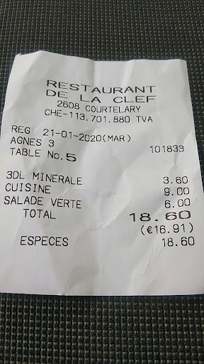 Read moreLe restaurant de la Clef est un endroit hyper accueillant, sans prétention. Il est facile d'accès, avec des places de parc. Possibilité de prendre son repas dans la salle à manger, convient pour un banquet de mariage, de baptême, d'anniversaire... Leur cuisine est copieuse, généreuse et il est impossible de repartir de la Clef sans avoir...
