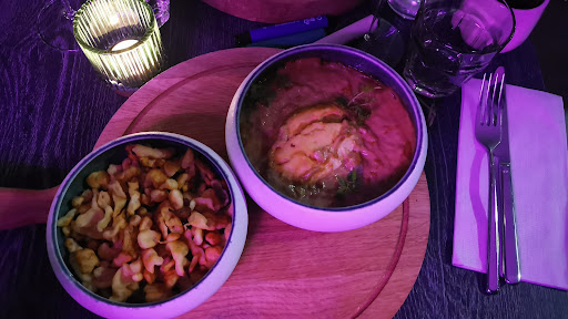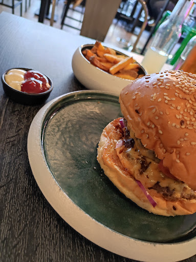 Read moreNous avons été très bien servis, comme toujours. Ambiance calme et chaleureuse, belle décoration avec du peps. Nous avons commandé un burger et une entrecôte de bœuf. L'entrecôte avait un excellent goût et la cuisson était parfaite. Seul bémol, beaucoup de gras et de nerfs et personnellement cela me bloque. Les frites sont servies généreusement et la vinaigrette pour la salade est simplement incroyable ! Nous avons également pris le thé froid maison à la mangue, un délice. Pour le dessert, churros au chocolat pour monsieur et tarte tatin du jour pour moi. Petit conseil: il serait judicieux de noter dans la carte que les churros sont accompagnés de Nutella. Mon compagnon est intolérant aux noisettes, c'est pourquoi il n'a pas touché au chocolat. Toutefois les churros étaient délicieux ! Et la tarte tatin une merveille; depuis le temps que je voulais en manger une ! La glace vanille qui l'accompagne (probablement maison) est succulente et la crème double de Gruyère accompagne ce plat parfaitement bien. Avec tout ça, nous avons eu du limoncello offert, ce qui a plu à mon compagnon. Merci encore pour l'accueil, nous reviendrons pour sûr et surtout essayer...