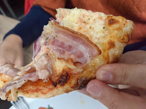 Read moreWaited a whole hour for the pizza to be delivered. I guess it depends who the pizzaiolo is because sometimes the pizza is absolutely awesome and other days it sucks. Today the pizzas didn't have alot of toppings on there. The prosciuto e funghi might as well have been a margharita pizza there was such little prosciutto and funghi drauf. The same with the vegetarian pizza. 3 strips of red pepper hardly any mushrooms and some artichoke. Delivery guy was...