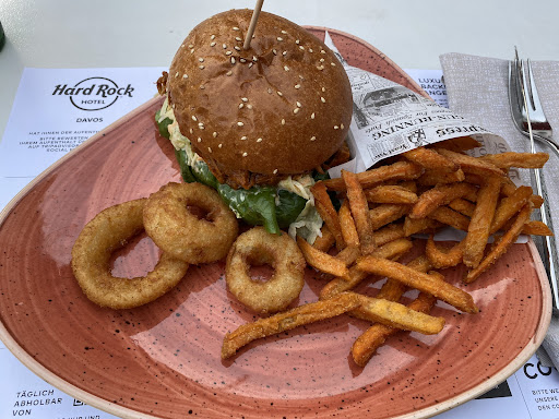 Read moreI had dinner two times there. The Hard Rock burger was good but pricey (CHF 44). The beef filet medallion was overcooked (asked à point but came medium+) and I'm wondering if it was smaller as it should. The breakfast buffet is great (missing the sunny side up eggs). I put 4 stars because of the kind...