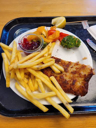 Ich frage mich, ob hier wirklich ausgebildete Köche am Werk sind, denn selbst jede Hausfrau und jeder Hausmann kocht mit mehr Leidenschaft und Können. Die Schnitzel waren zudem auf einem Haufen gestapelt und offensichtlich übergart.