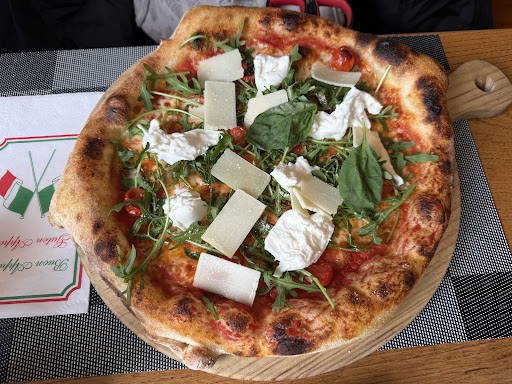 Auch der Service war klasse! Freundlich, aufmerksam und sehr zuvorkommend. Mein Sohn wünschte sich eine Penne Pasta mit grüner Pesto, obwohl es sich um ein Mittagsmenü handelte, und der Wunsch wurde ohne Probleme erfüllt. Die Atmosphäre in der Pizzeria ist entspannt und einladend, perfekt, um gemeinsam zu essen und eine gute Zeit zu genießen.