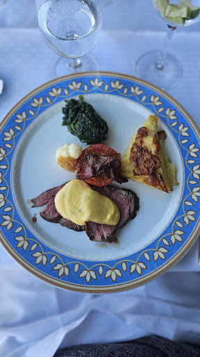 Wir waren mit 4 Personen dort und mussten allein 15 min warten bis unsere Getränkebestellung aufgenommen wurde. Weitere 15 min für die Getränke. Die Vorspeise (Tatar), welche wir als Hauptgang bestellt hatten war sehr fein jedoch die Portionsgrösse eher grenzwertig wenig. Wenn ich diese Menge als Hauptgang bekäme, hätte ich danach noch Hunger. Das Châteaubriand (ab 2 Personen zu bestellen) wird mit Gemüse und Kartoffelgratin serviert. Hierbei war das Gratin das Highlight und das Châteaubriand für 4 Personen leider auch wieder deutlich zu wenig. Es gab ca. 200g bis maximal 250g pro Gast. Normalerweise erwarte ich mind. 300g pro Portion. Wenn wir zu viert Chateaubriand bestellen gehe ich davon aus, dass wir 2 Filets (Kopf/Mittelstück) erhalten und nicht 1 grösseres Stück durch 4 geteilt wird. Aus diesem Grund vertraue ich i.d.R. darauf, dass die Fleischgewichte p.P. angegeben werden. Hier bestätigte sich leider unsere Vorahnung. Geschmacklich waren die Speisen schon sehr fein aber von der Menge ging es einfach preislich nicht mehr auf. Als Frau bin ich nicht die grösste Esserin, muss aber leider sagen, Preis-Leistung in Verbindung mit dem langsamen Service stimmt hier leider nicht. Man hat das Gefühl man zahlt für die Aussicht.