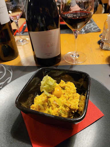 Read moreL’endroit est atypique, entouré de bouteilles de vin on a l’impression de manger dans un cave. Le personnel était au top très souriant et sympathique toujours à l’écoute en demandant si tout va bien. Nous avons tous pris un tartare en entrée puis un tartare différent en plat de résistance. Chacun des tartares est déjà présenté en dégustation afin de pouvoir ajuster l’assaisonnement en fonction de vos gouts et vos demandes sont bien prises compte quand le plat vous est servi. Comme le restaurant est fusionné avec un bar à vins, il y a un choix vraiment important de vin.