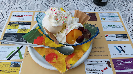Read moreIl y avait peu de monde donc pas d'Ă©toiles donc pas vraiment d ambiance. Ce n est pas toujours le cas .Par beau temps et chaleur belle terrasse en bordure de forĂȘt. C est idĂ©ale. Par contre le sommelier trĂšs sympa et service super. Avons mangĂ© entrecĂŽtes de cheval une avec ail frais il y avait pas qu une gousse ail et aux poivres. Ănormes entrecĂŽtes j ai eu de la peine Ă finir avec frites maison et quelques lĂ©gumes plus salades Ă l entrĂ©e. Pas cher. C etait excellent. Une...