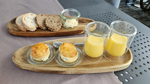 Read moreGestern Abend war ev. etwas der Wurm drin. đ Ich selbst habe im Service gelernt und erlebte mich mehrfach ĂŒberrascht. Im Glasanbau zog es stark, auch die junge Frau, am Tisch nebenan, ass mit Mantel und Schal. Die Suppe im Amouse-Bouche lies sich auf keine elegante Weise 'austrinken'. Der Geschmack selbst war sehr lecker. Leider wussten wir nicht, um was es sich beim Gruss aus de KĂŒche handelt. Bedient wurde von einer neuen Servicekraft, einem Lehrnenden und einer deutschen Fachkraft. Die Menuauswahl mittels Tablets fĂŒhrte an unserem Tisch zu vielen spassigen Momenten. Eine erfrischende und sehr moderne Variante. NĂ€chster Schritt - direkt via Tablet die Menus in die KĂŒche vermitteln können, ansonsten kann die Verwendung von digitalen Mitteln irritieren. Trotz wenig GĂ€sten, mussten wir lange auf das Essen warten. Am Nebentisch wurde zuerst eine angefangene Weinflasche serviert, obschon eine ganze Flasche bestellt wurde. Beim Paar nebenan wurde das bestellte Menu vorab direkt aus der KĂŒche in der Pfanne am Tisch prĂ€sentiert, mit der Aussage der deutschen Fachkraft "Sehr geehrten Damen und Herren (Mehrzahl ?), gerne wird folgende [...] fĂŒr Sie zubereitet" und verschwand wieder in der KĂŒche. Dies wirkte enorm irritierend fĂŒr mich und schien auch das junge Paar zu beirren. Es scheint, als wĂŒrde ein gehobener Service versucht, der gestern Abend leider nicht gelungen ist. Das Essen war herausragend, besonders das Fleisch. Ein riesen Lob an die KĂŒche! Die Menge der Zutaten war zutreffend. Frau Ulrike Többen stiess am spĂ€teren Abend dazu und grĂŒsste alle GĂ€ste. Der Dessertturm ist eine gute Idee. Die Einhaltung der Hygieneauflagen muss ich bei den offenen EinmachglĂ€ser leider anzweifeln. Aufgrund der Platzierung des Turms in der Mitte des Tisches konnten wir einander nicht mehr sehen. Die PrĂ€sentation am Ende des Tisches ist passender. Beim Ambiente wirken die 'lachsfarbenen' LĂ€ufer, der weisse, beleuchtete Dekobaum in der Ecke, die gelben Rosen, die roten FilzschneestĂ€rne und die GlĂ€ser mit Teelichtern sehr gĂŒnstig. Die Kerzen auf den StĂ€ndern und die weissen Rosen waren dagegen sehr stimmig. GemĂ€ss einem Foto auf der Website wurde der Tisch mit taupefarbenen LĂ€ufern und wenig Deko schon sehr einladend eingedeckt. Ich konnte die Vorgehensweise nicht nachvollziehen, dass das Besteck und die GlĂ€ser nicht vorgedeckt waren (nur Brotteller ?). Beim Nachdecken jedes Ganges wurde das Besteck schrĂ€g rĂ€chts vom Gast platziert. Ggf. handelt es sich hierbei um eine neue, moderne Form zum Eindecken. Der Service wirkte an unserem Abend sehr unvorbereitet. Der Dresscode vom Personal ist sehr schön. Zudem bewundere ich die personalisierten Grafiken auf der Speisekarte und Website - wunderschöne und gelunge Darstellung. FĂŒr die hohe Preislage erwarte ich nebst dem hervorragenden Essen ein stimmiges Ambiente und...