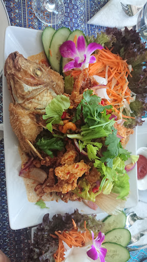 Niveau Gekochtes: Auf mittlerem Chinalokal Level. Das war nix. Ambiente könnte deutlich besser sein. Bedienung sehr freundlich, kunstvolle Deko auf dem Teller. Für das Qualitätsniveau zu teuer. Das ist keine Thaiküche, die übliche Pampe. Aber schöne Bildchen haben sie hier und...
