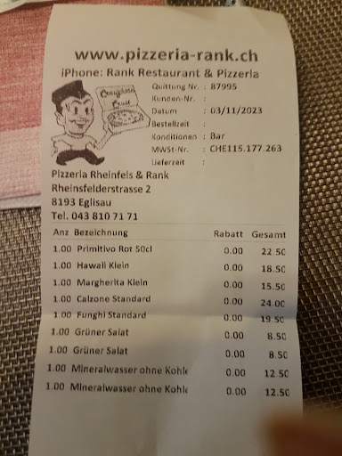 Read moreTischreservation online bestätigt von 17.30- 19.00 Uhr - durften dann länger bleiben, da Restaurant am Monatsanfang, Freitagabend gähnend leer war. Wir waren die Einzigen (2Erw. und 2Kinder). Service unaufmerksam, kein Dessert erfragt, "Reste einpacken - alles zusammen, bitte" Reste kamen in drei Tüten..... 142.- Total, davon 25 Fr. für 2x1.5 L Mineral in Petflaschen zum selber öffnen und einschenken. 0.5dl Primitivo (welcher steht nicht auf der Karte und wird aucv nicht am Tisch gezeigt). So eine flache Calzone noch nie im Leben gesehen, daneben Tomatensugo (wofür?), schmeckte wie aus dem Tetrapack. Leider lieblos, bis auf zwei Kinder Überraschungseier für die Kinder, die schon vor dem Essen gereicht wurden.... Tja, das letzte Mal da gewesen, bis die Besitzer...
