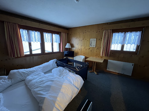 The hotel is located in such a way that it offers a beautiful view of the mountains. THE SETTLEMENT was successful. You can park your car free of charge next to the hotel. The young guy at the counter explained to us what to see nearby, gave us a discount card and helped carry our suitcases to the room. The room is spacious with a balcony and a beautiful view of the mountains. The bathroom is small, modest with a shower. Air conditioning, refrigerator, coffee machine no. It's a pity. The decoration of the hotel is simple but interesting. Breakfast for an additional 15 francs per person. Breakfast is minimal but worth the money. This is a restaurant hotel. And so we ordered dinner in advance. The table was located by the window overlooking the mountains. An elderly waiter brought us a menu in German, they didn’t have any other languages. He himself didn’t know English and explained to us in German what to choose and it didn’t matter to him that we didn’t understand him. It was hard for us to choose. For two with my wife, we ordered 2 beers, 1 salad, 1 wine soup, and chose the most expensive main course, hoping that we would definitely not be mistaken. cordon bleu sausages for 46 francs. Ice cream for dessert. We waited a long time for the salad to arrive. It was just a few lettuce leaves and 1 cherry tomato. It is not possible to make this portion smaller even for children and there is no dressing. After another 20 minutes, the soup was brought. Finely chopped vegetables in broth. The taste is interesting but the portion is small. After 30 minutes, the main course was served. Meat fried in breadcrumbs with cheese inside, garnished with chips and a few small pieces of carrots. The dish is not aesthetically decorated in any way, the chips, like in McDonald's, are simply scattered and there is a cutlet nearby. The cutlet was supposed to turn out crispy but it was soft, the cheese just spread inside the meat, this did not improve the taste. The dish is simply no for such money. Ice cream was brought late and not what I ordered. To sum up, I have never seen such service and such food. Is there a professional chef at all? We were in no hurry, but 3 simple dishes to wait 2 hours? The cooking quality is terrible! No respect for customers. Why not translate the menu into English? You accept tourists. I highly recommend not to dine in the hotel restaurant. You can have a beer on the outdoor terrace overlooking the mountains. All things considered, I give this hotel an...