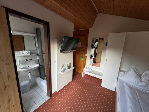 The hotel is located in such a way that it offers a beautiful view of the mountains. THE SETTLEMENT was successful. You can park your car free of charge next to the hotel. The young guy at the counter explained to us what to see nearby, gave us a discount card and helped carry our suitcases to the room. The room is spacious with a balcony and a beautiful view of the mountains. The bathroom is small, modest with a shower. Air conditioning, refrigerator, coffee machine no. It's a pity. The decoration of the hotel is simple but interesting. Breakfast for an additional 15 francs per person. Breakfast is minimal but worth the money. This is a restaurant hotel. And so we ordered dinner in advance. The table was located by the window overlooking the mountains. An elderly waiter brought us a menu in German, they didn’t have any other languages. He himself didn’t know English and explained to us in German what to choose and it didn’t matter to him that we didn’t understand him. It was hard for us to choose. For two with my wife, we ordered 2 beers, 1 salad, 1 wine soup, and chose the most expensive main course, hoping that we would definitely not be mistaken. cordon bleu sausages for 46 francs. Ice cream for dessert. We waited a long time for the salad to arrive. It was just a few lettuce leaves and 1 cherry tomato. It is not possible to make this portion smaller even for children and there is no dressing. After another 20 minutes, the soup was brought. Finely chopped vegetables in broth. The taste is interesting but the portion is small. After 30 minutes, the main course was served. Meat fried in breadcrumbs with cheese inside, garnished with chips and a few small pieces of carrots. The dish is not aesthetically decorated in any way, the chips, like in McDonald's, are simply scattered and there is a cutlet nearby. The cutlet was supposed to turn out crispy but it was soft, the cheese just spread inside the meat, this did not improve the taste. The dish is simply no for such money. Ice cream was brought late and not what I ordered. To sum up, I have never seen such service and such food. Is there a professional chef at all? We were in no hurry, but 3 simple dishes to wait 2 hours? The cooking quality is terrible! No respect for customers. Why not translate the menu into English? You accept tourists. I highly recommend not to dine in the hotel restaurant. You can have a beer on the outdoor terrace overlooking the mountains. All things considered, I give this hotel an...