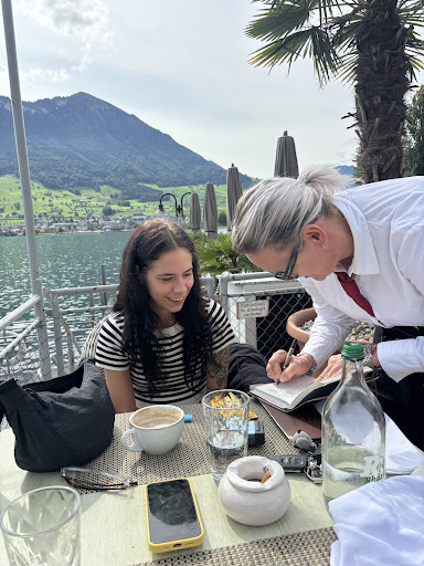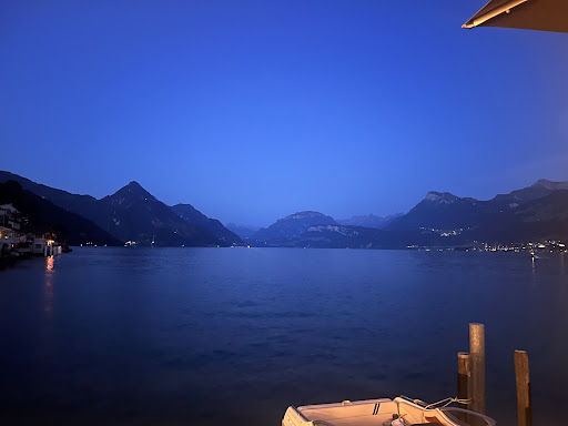 So, we arrived without a reservation and we were lucky they had space for two. It was a summer night, extremely hot and they were fully booked. The waiters were very friendly and so kind although it was extremely hot (remind you that they were wearing long sleeves and trousers). We didn’t want to order pizza because is seemed to obvious so we went for the cordon blue. A bitt pricey for where we come from but oh well who cares. To be honest, it was good but not the best. But the pizza’s I saw on other people’s tables looked amazing. I also like to inform you that the view across the lake is absolutely mindblowing. Will I order the cordon blue again? No. Will I visit this restaurant again and go for the pizza?: 1000x yes! Friendly staff, great hospitality and the view is absolutely worth visiting this restaurant. Hard working staff with a smile, respect ✊ 🧡