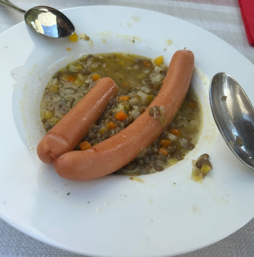 We had to eat three main courses just to get normally full (this has never happened before). One of those dishes was a lentil stew with sausages: 30 franks for what was obviously a powdered soup with a frozen garden vegetable mix (maybe 2 franks in a local supermarket) with the cheapest sausages you can find in a supermarket - which had not even been heated properly but were served lukewarm.