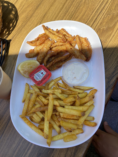Die Fischknusperli war sehr frisch und haben extrem gut geschmeckt. Hunde sind hier willkommen :) das Restaurant ist sehr einfach und eher eine Kantine sehr gut organisiertes Abholen mit Piepssystem sehr grosse Portionen