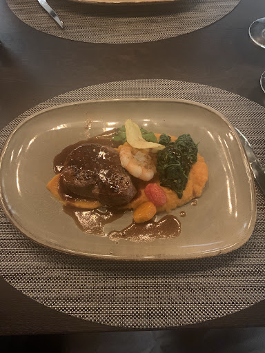 This was my first visit to Hof Beiz, but for sure not my last. The ambiance was a fusion of traditional and modern interior design which makes it very cosy but at the same time schick and classy. Service was friendly, but not overly intrusive.All of the staff wore face masks but the friendly smile was somehow still apparent. The starter, main and desert were all worthy of an award.I had the Surf and Turf, and they made it just how I like it. Highly recommend for company or private functions, or just a refined night out with a friend...